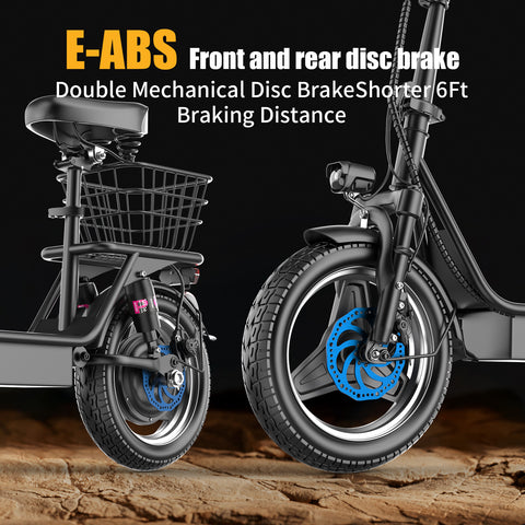 【Safe Riding】- Adults electric scooter with seat high-brightness front lights and rear brake lights are your night guardians. The effective dual disc brakes on the electric scooter for adults provide excellent stability and control, allowing you to come to a gradual and safe stop. Unique stem lock prevents the stem from accidentally coming off.